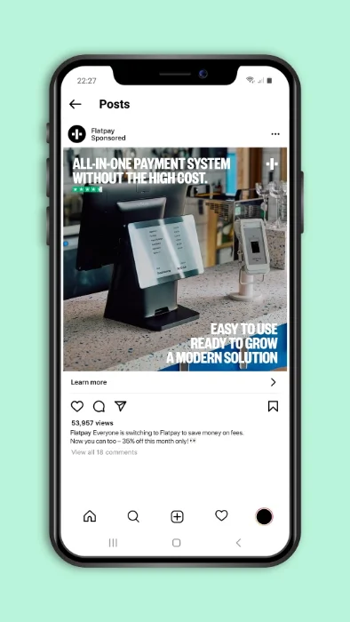 Flatpay’s communication relies on bold, simple statements that are instantly readable in fast-scroll environments.
